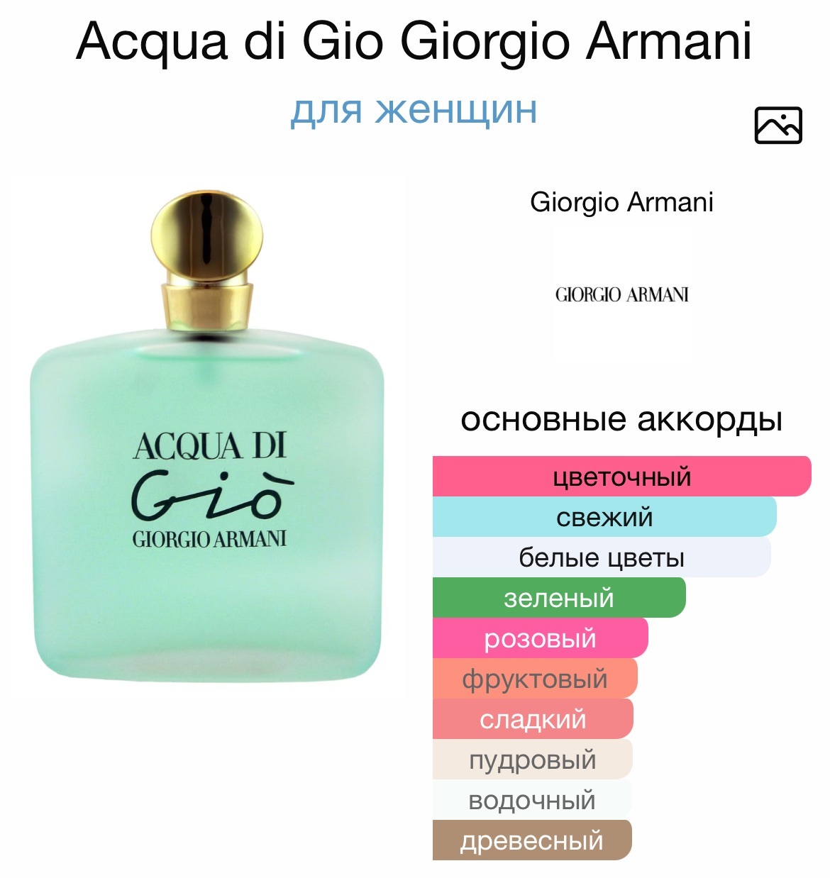 Acqua di Gio Giorgio Armani — это женский аромат с фруктово-цветочной композицией.