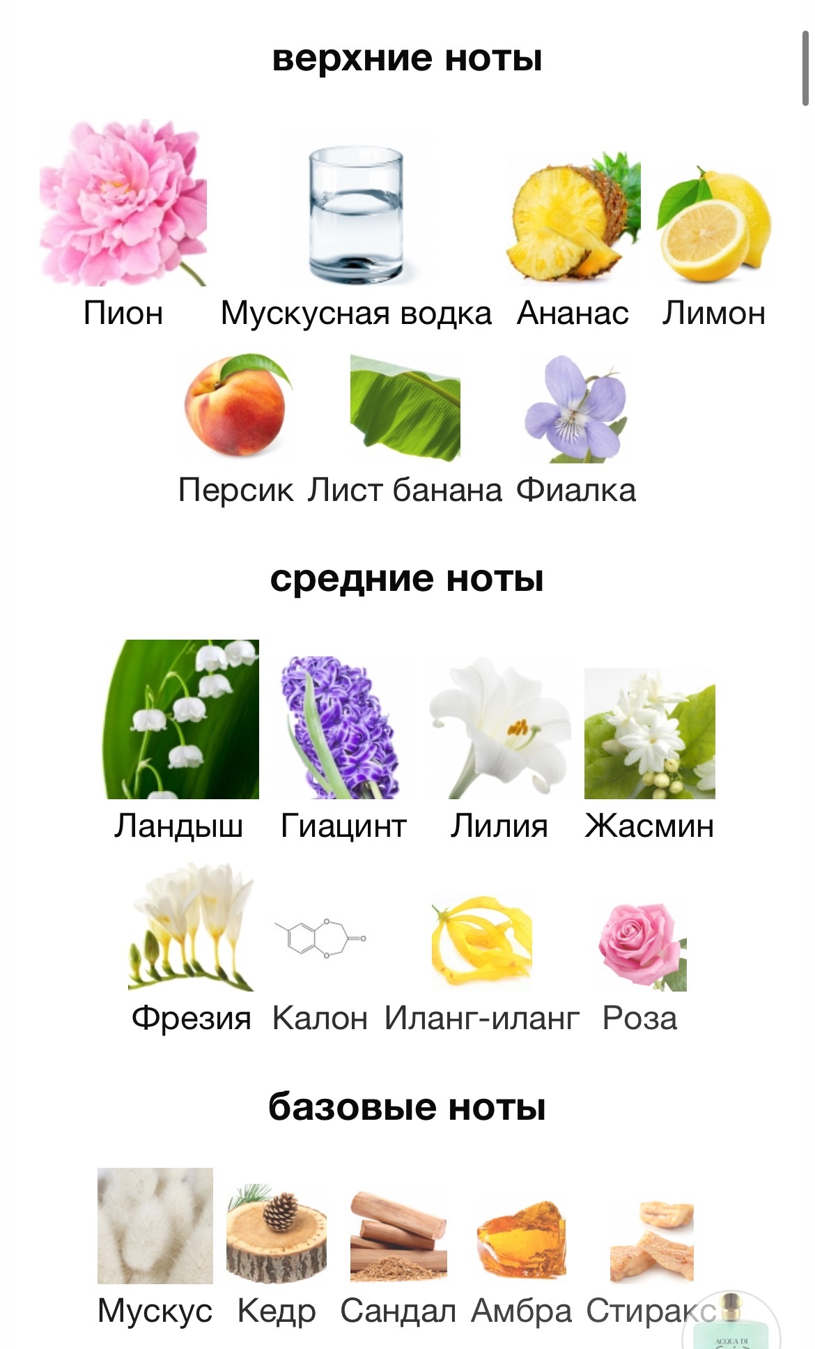 Лёгкий, нежный, дерзкий, чувственный и соблазнительный аромат. Отражает всю прелесть средиземноморского побережья: прекрасные пляжи, свежий морской бриз, благоухание натуральных ароматов природы.