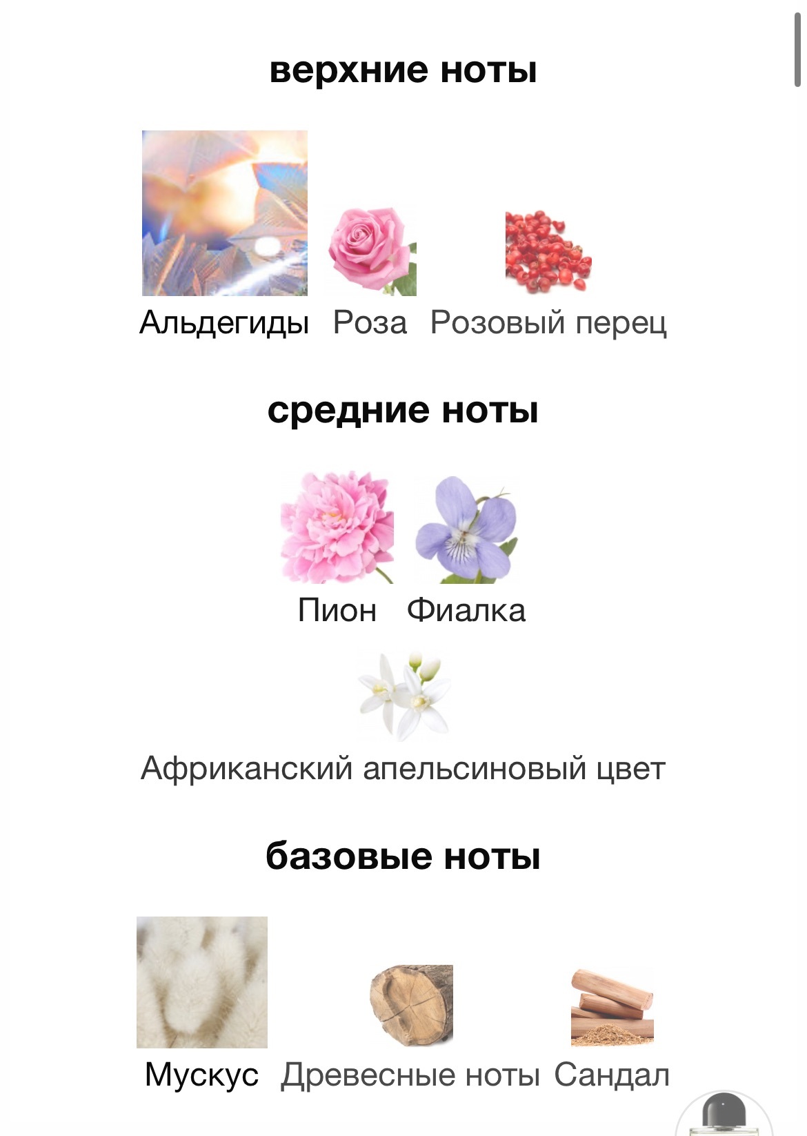 Подходит как молодым девушкам, так и женщинам среднего, элегантного возраста. Может использоваться в любое время года: на морозе зимой мелодия звучит фиалкой и пионами, в жаркую погоду летом он освежает ледяным мускусом.